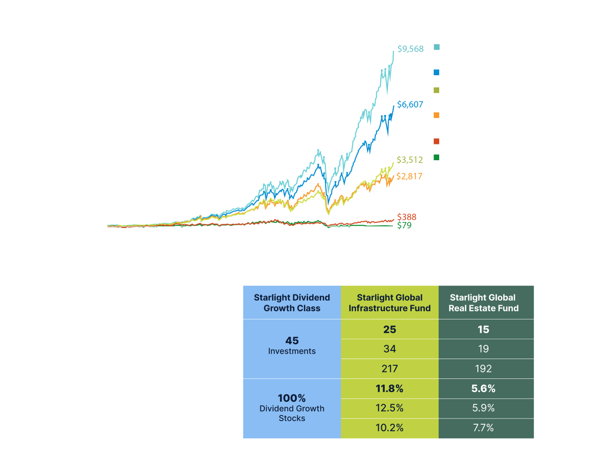 Starlight Global Real Estate Fund and Starlight Global Infrastructure Fund are designed to provide investors with tax-efficient distributions supported by strong dividend and distribution growth from the underlying investments.